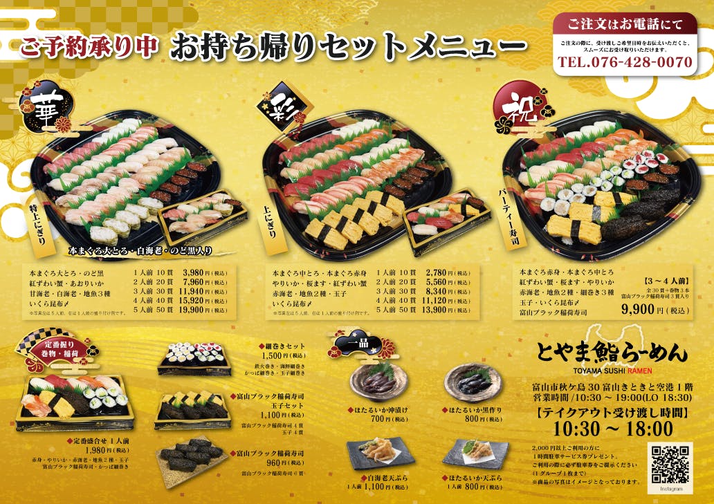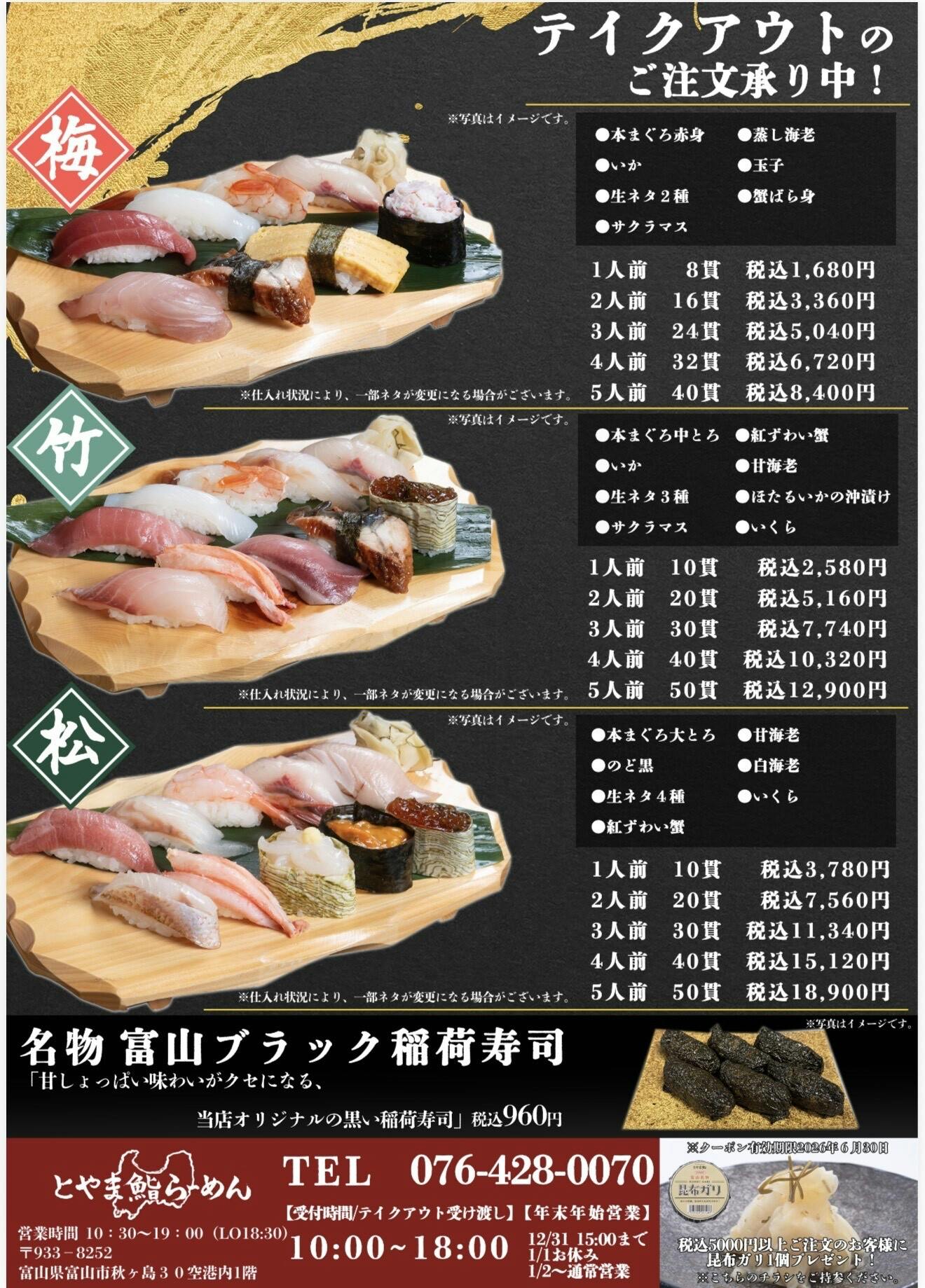 富山の旨い『お寿司』と『ラーメン』をお楽しみ下さいませ。
